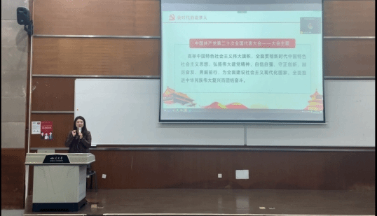 2022年10月29日下午,为深入贯彻学习中国共产党第二十次代表大会精神,我院以“做时代的追梦人”为主题,通过研究生综合素质课,面向2022级硕士研究生举办了专题学习会。本次专题学习由我院2022级硕士研究生辅导员郑格老师主讲,围绕新时代中国取得的辉煌成就、面对的使命任务、实施的战略路线,讲述时代楷模与身边榜样的故事等内容,鼓舞硕士新生既怀抱梦想又脚踏实地,既敢想敢为又善作善成,努力成为有理想、敢担当、能吃苦、肯奋斗的新时代追梦人。