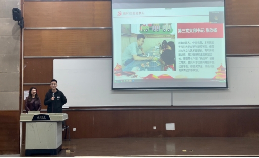 郑格老师结合学院学科特色,为大家详细介绍了实施科教兴国战略与实现文化自信自强的具体路径,并由此强调了新时代青年的重要作用。为了更好地向大家传递当代中国优秀青年投身祖国建设精神,郑格老师播放了“大山的女儿”黄文秀的故事短片。黄文秀一心为民、倾力扶贫、舍身忘我的伟大奉献精神令同学们深受触动。在我们身边,文新学子当中也不乏发挥引领作用的榜样。我院2022级新闻与传播专业硕士生李芳作为一名退役军人,从“角色”定位出发,向同学们分享了自己对于国家安全与乡村振兴的认识,并表示:“如今作为一名研究生,希望我们都能够好好努力,心有底气地说出‘请党放心,强国有我’。”2022级新闻学专业硕士生王小翠、2022级中华文化国际传播专业硕士生张欣杨则结合自身支教经历,回顾了脱贫攻坚和乡村振兴的历程与成果。他们认为,在一批批投身实践的青年人身上,令人切实感受到了上下同心的脱贫攻坚精神和感召力量。
