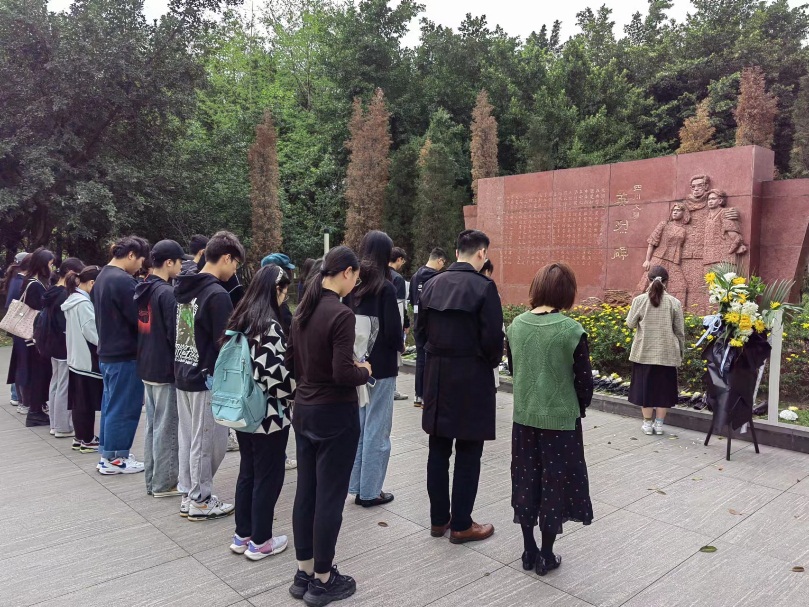 4月3日上午,我院2022级本科新传二班在四川大学英烈碑前举行“缅怀先烈,承续遗志”清明祭奠活动。我院党委副书记银浩、2022级本科生辅导员杨珊出席了此次活动。