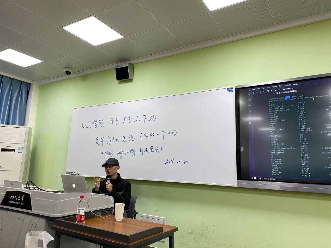 20日下午,四川大学2001级校友吴可老师在四川大学江安校校区一教D109做Python交流,主题是《class singularity:到水里去》。吴老师结合自己的实践案例,就文科生如何进入Python做了深入浅出的讲演。