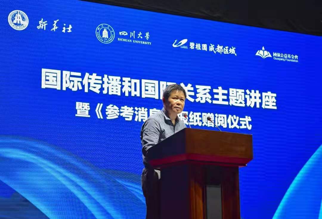 活动现场,新华社四川分社、碧桂园集团成都区域公司共同向四川大学文学与新闻学院师生赠阅150份《参考消息》,随后,《参考消息》报社新媒体中心副主任、国际问题专家刘华老师为文新学子带来“国际传播和国际关系”的主题讲座,生动解析“国际传播”的现状及特征。