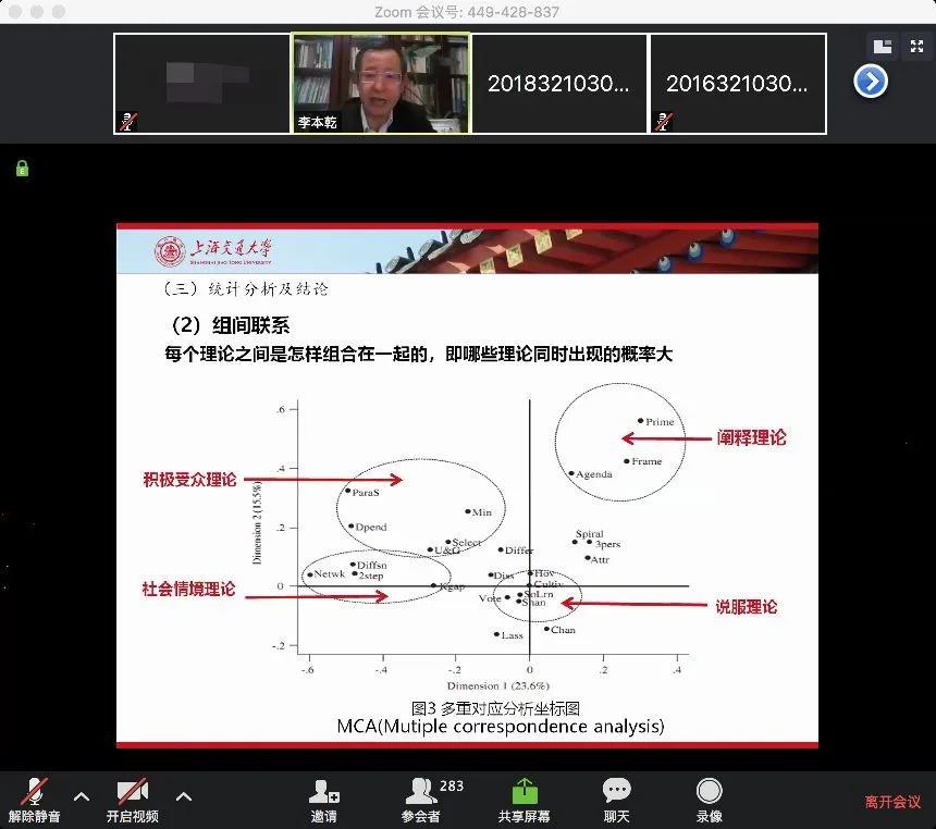 3月12日晚,第四场线上学术讲座通过Zoom平台如期举行。上海交通大学媒体与传播学院院长、博士生导师李本乾教授带来了主题为 “媒介效果理论的演变:从三阶段、累积效果到权变效果”的讲座,我院蒋晓丽教授任主持人。