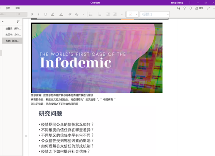 今晚韦路老师的讲座干货满满,从疫情期间的社会信任角度给我们分享了相关研究。特别是“信息疫情“(Infodemic)这个概念的提出和阐释,也为我们从社会角度结合新闻传播专业知识开拓了新思路。韦教授介绍量化研究很细致,从研究问题到问卷的设计和最后的结果分析,还有相关措施与建议的提出,让我对量化研究的选题和具体的知识应用都有所思考。虽然挤进讲座直播间的竞争很是激烈,但却收获满满!