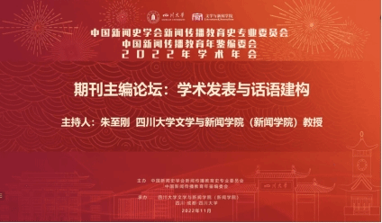 2022年11月12日下午,中国新闻史学会新闻传播教育史专业委员会、中国新闻传播教育年鉴编委会2022年学术年会分论坛“期刊主编论坛”在线上成功举行。该分论坛由中国新闻史学会新闻传播教育史专业委员会、中国新闻传播教育年鉴编委会主办,四川大学文学与新闻学院承办。本次会议的主题是:学术发表与话语建构。《国际新闻界》《新闻界》《新闻大学》《现代传播》《新闻与传播研究》《传媒观察》等期刊的主编和资深编辑参加论坛并发言交流。
