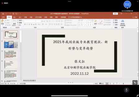 北京印刷学院张文红教授报告的内容是2021年我国出版专业教育的现状、新形势与变革趋势。他首先介绍了我国出版相关专业的高职教育、本科教育与硕博教育现状,然后分析了2021年出版教育体现出的新形势。张文红教授也基于对现状的分析,提出了出版专业教育的未来变革趋势。其一,是要结合疫情常态化的背景,构建出版专业人才教育的新路径;其二,要落实文化强国战略,探索出版专业人才培养的新思路;其三,要面向融媒体时代,打造出版专业复合人才的新实践。