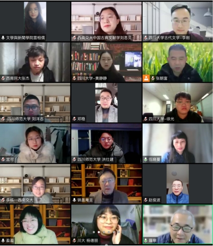 2022年12月3日,由四川大学中国文学与新闻学院古代文学教研室、古典文献学教研室承办的第八届玉垒论坛在线上举行。玉垒论坛旨在促进成都高校中国古代文学、中国古典文献学专业研究生间的学术交流,自2013年开办以来,论坛规模不断扩大,成为成都地区古代文学、古典文献专业硕士、博士学术交流的重要平台。此次参会的老师与博士、硕士80余人,主要来自四川大学、西南交通大学、四川师范大学和西南民族大学。此次会议由四川大学文学与新闻学院古代文学教研室戴莹莹、古典文学教研室伍晓蔓老师主持、学生交流环节由四川大学文学与新闻学院21级研究生雷相儒同学主持,共有12位同学报告学术论文,12位同学进行评议(名单附后)。四川大学的周裕锴、伍晓蔓、张朝富老师,西南交通大学的罗宁、李栋、周芳、段莉萍、陈伦敦、魏刚老师,四川师范大学的邓稳、王红霞、赵俊波老师、,西南民族大学的张仲裁、左志南老师参与了点评与讨论。