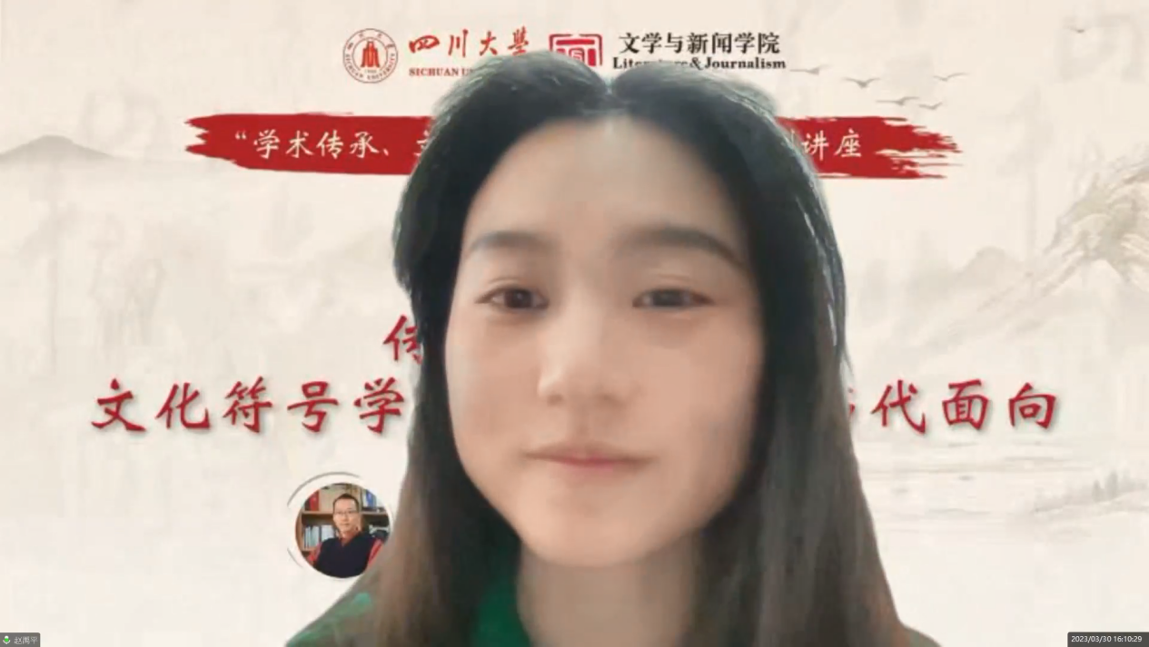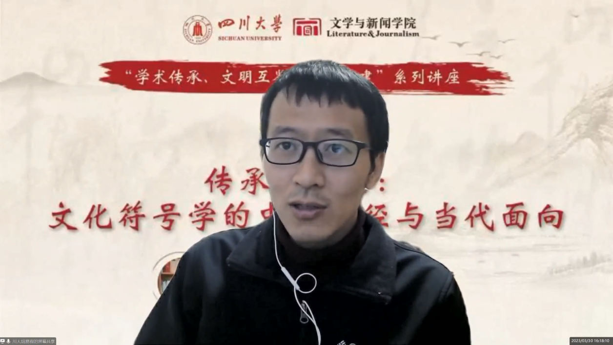 2023年3月30日,我院主办的“学术传承、文明互鉴与话语构建”系列讲座第七讲在线上顺利举行。我院胡易容教授作了“传承与互鉴:文化符号学的中国路径与当代面向”的主题讲座,由赵禹平老师主持。