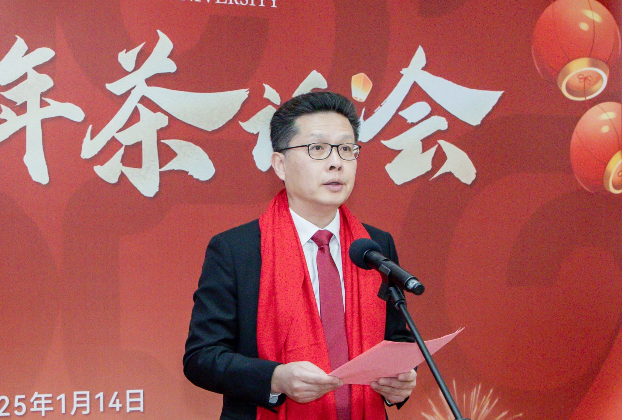 张鹏代表学校向各位老领导、老同志、民主党派和无党派人士、学校师生、留学生代表们致以诚挚的问候和美好的祝愿。他表示,2024年是砥砺奋进的一年、满载收获的一年、倾情用情的一年。我校坚持以习近平新时代中国特色社会主义思想为指导,全面深入贯彻党的二十届三中全会精神和习近平总书记关于广西工作论述的重要要求,全面落实全国、全区教育大会精神,励精图治,奋发进取,学校高质量发展迈出了坚实的步伐。他指出,2025年是“十四五”规划收官之年,是博士授予单位建设的第一年,学校进入了一个新的历史发展阶段。他强调,要以新的站位、新的视角、新的理念去谋划未来的事业。希望老师同学们在新的一年奋勇争先、挺膺担当,积极调整心态,主动拥抱变局,在伟大的时代变革中磨砺心性与才干,在新的开局中增长智慧和力量,积极服务经济社会发展,为强国建设、壮美广西建设作出新的更大贡献。