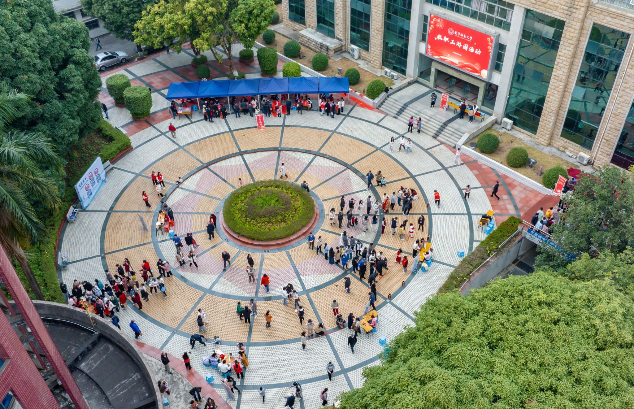 教职工在明秀校区喷泉广场参加游园活动