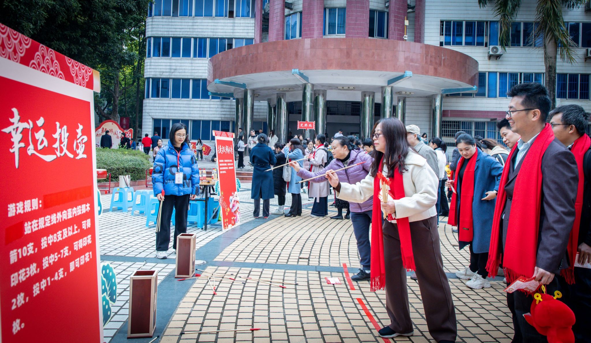 教职工参加游园活动“幸运投壶”