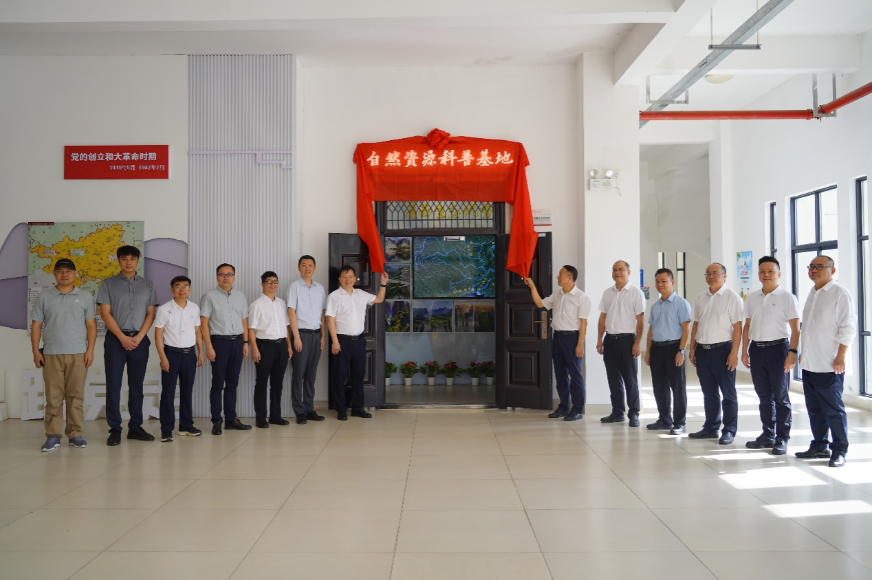 活动中,我校卢远副校长、广西自然资源厅二级巡视员周文、广西自然资源厅耕地保护监督处处长黄晓辉、广西自然资源宣传中心主任廖东光、广西自然资源博物馆副馆长韦家宏等领导和地理科学与规划学院、自然资源与测绘学院领导班子在学校武鸣校区地源楼共同为自然资源科普基地揭牌。