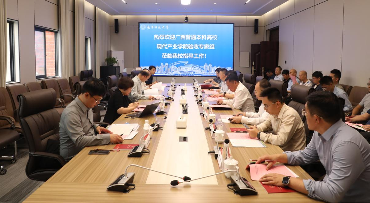 卢远代表学校对专家组的莅临表示热烈欢迎,介绍了学校的办学历程、学科建设成果及产教融合情况,重点介绍了学校以产业需求为导向,整合资源推进3个示范性现代产业学院建设的进展与成效。卢远强调,此次验收工作是推动产业学院内涵提质的重要契机,相关部门、学院要充分吸收专家组的意见建议,持续深化产教融合、科教融汇,不断创新现代产业学院管理体制和育人模式,进一步提升产业学院服务区域产业发展的能力,以高质量的办学成果助力新时代壮美广西建设。