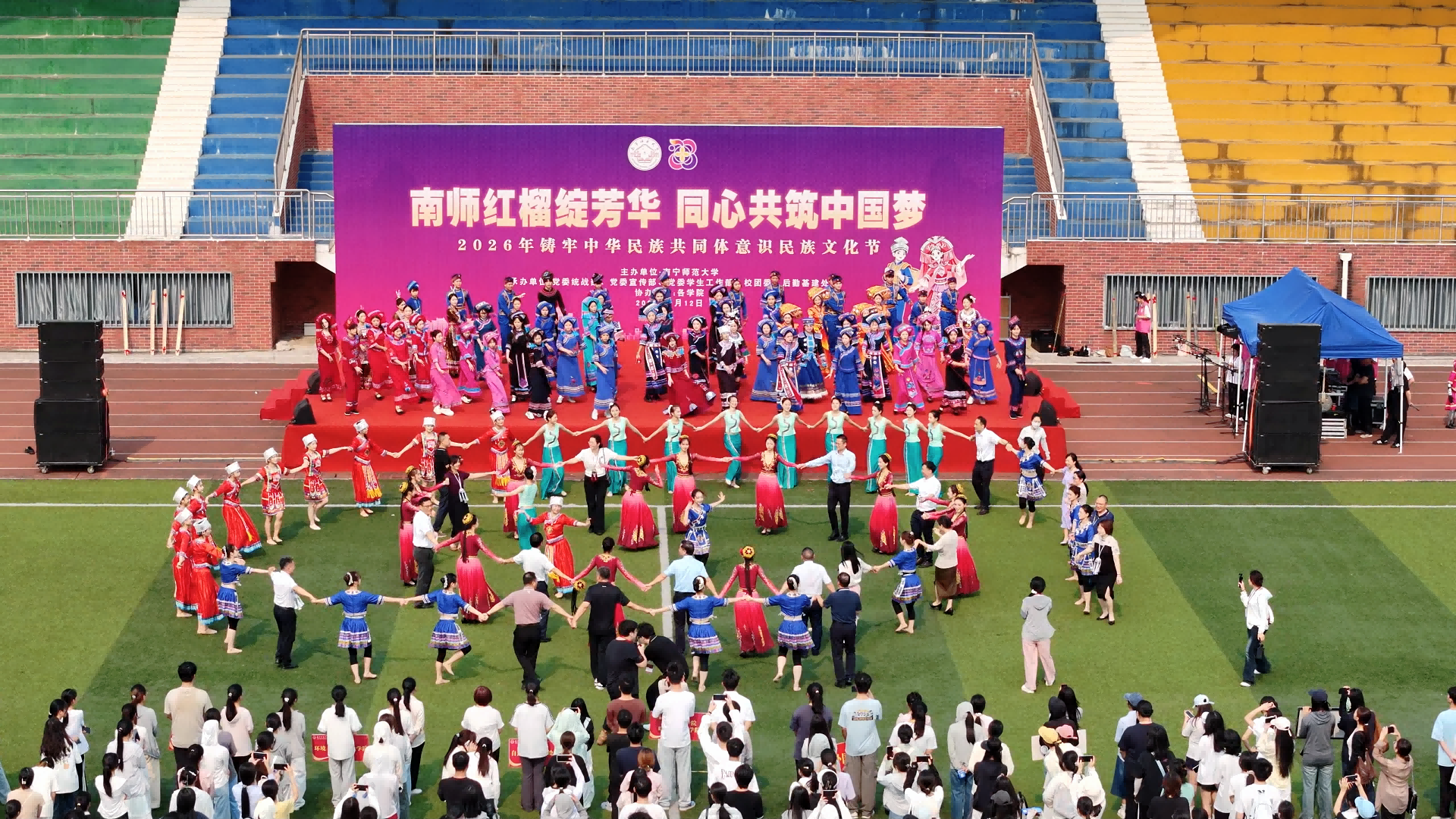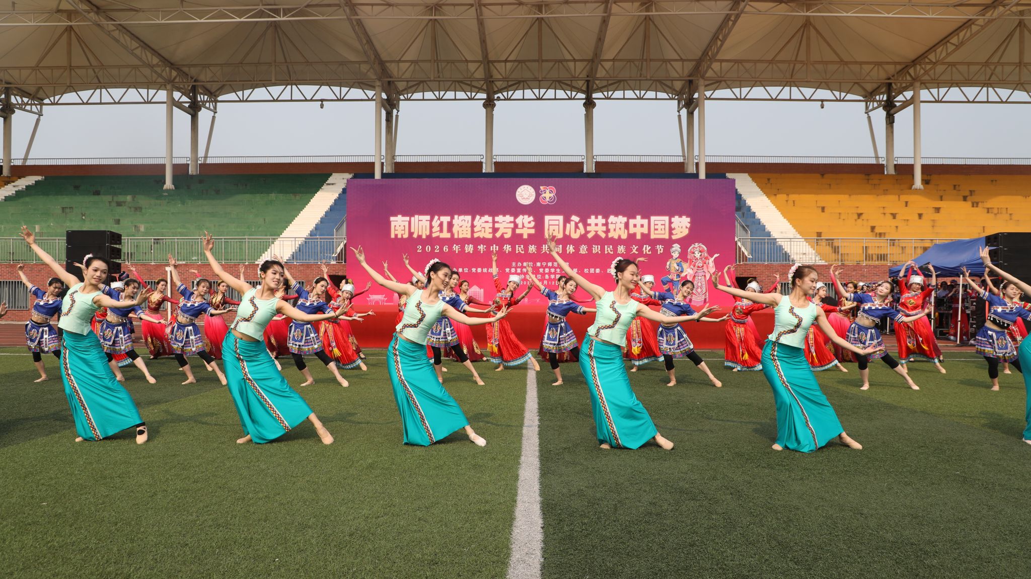 4月12日上午,“南师红榴绽芳华 同心共筑中国梦”2026年铸牢中华民族共同体意识民族文化节在武鸣、五合、明秀三个校区同步启动。自治区民宗委政策法规与理论研究处处长黄金海,学校党委副书记唐荣双出席武鸣校区启动仪式并致辞。本次活动由党委统战部、党委宣传部、党委学生工作部、校团委、后勤基建处联合承办。相关职能部门负责人、各学院党委副书记参加启动仪式,三校区5000多名师生积极参与,共赴这场民族文化的美好之约。