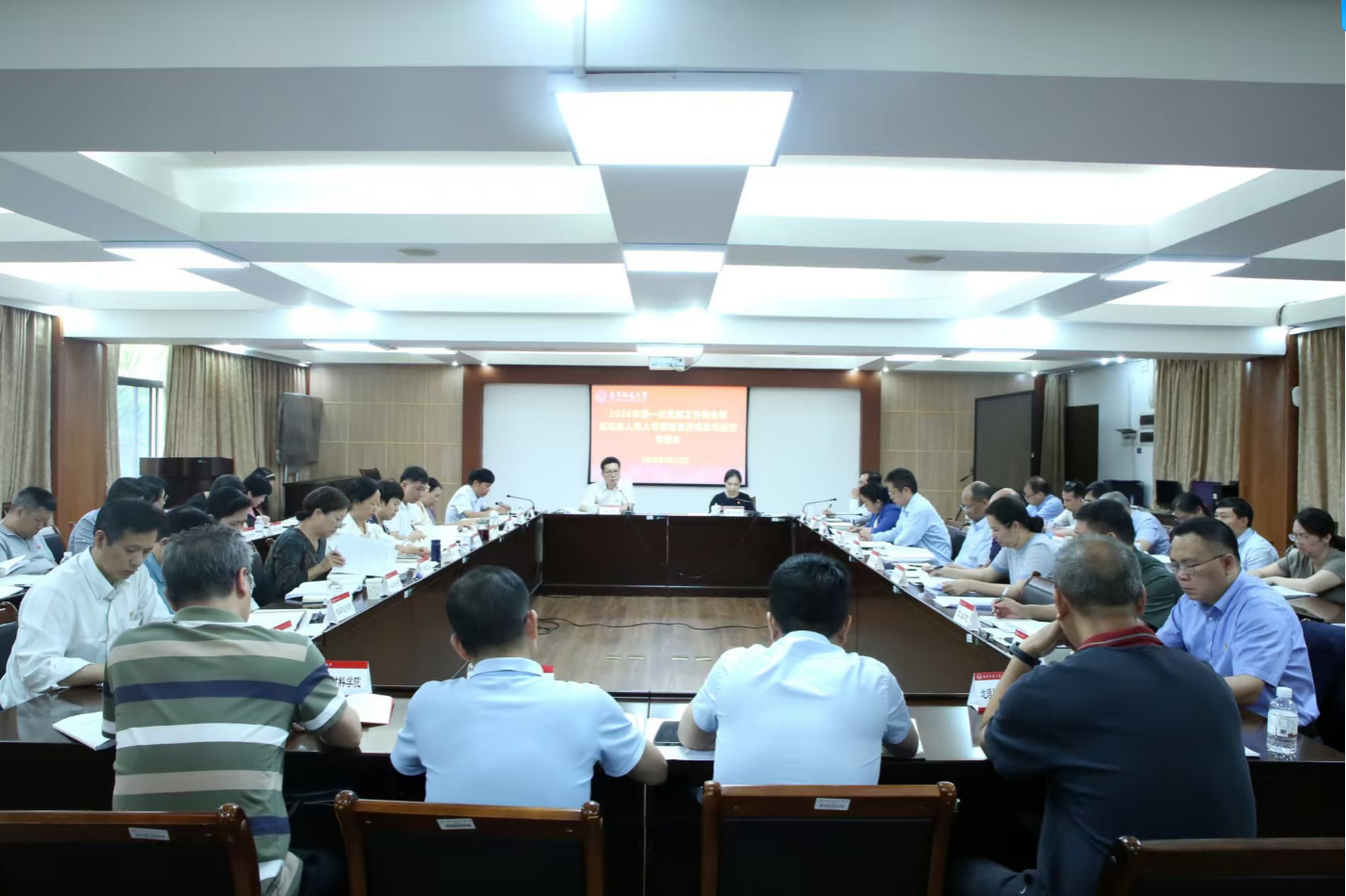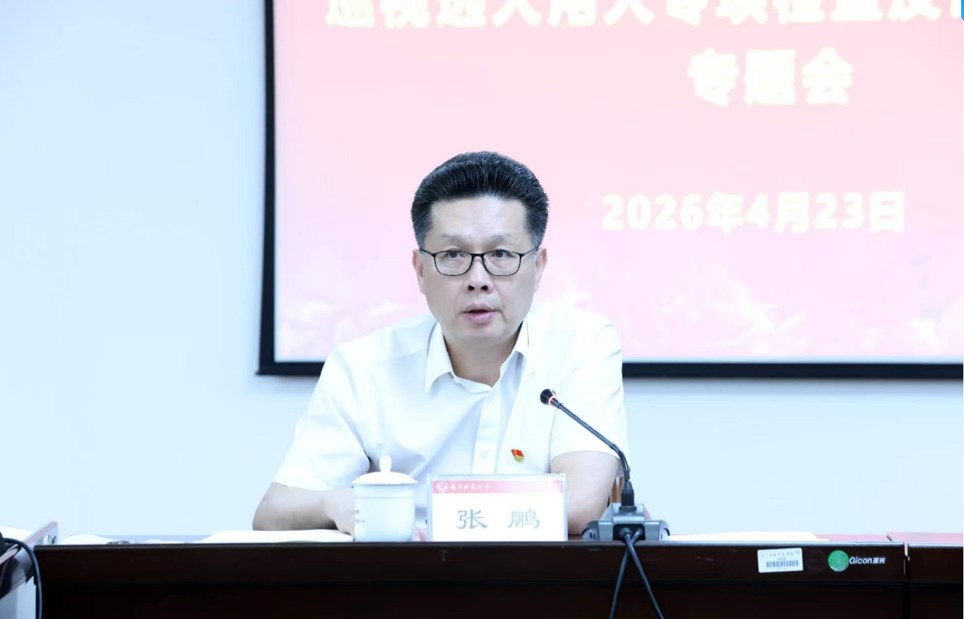 4月23日下午,学校2026年第一次党建工作例会暨巡视选人用人专项检查反馈意见整改专题会议在明秀校区召开。会议深入学习贯彻习近平总书记关于巡视工作的重要论述,对标党中央和自治区党委巡视整改部署要求,对统筹推进相关整改工作进行再聚焦、再部署、再推动。学校党委书记张鹏出席并讲话,党委副书记唐荣双出席,党建工作领导小组成员、各二级党委书记参会。
