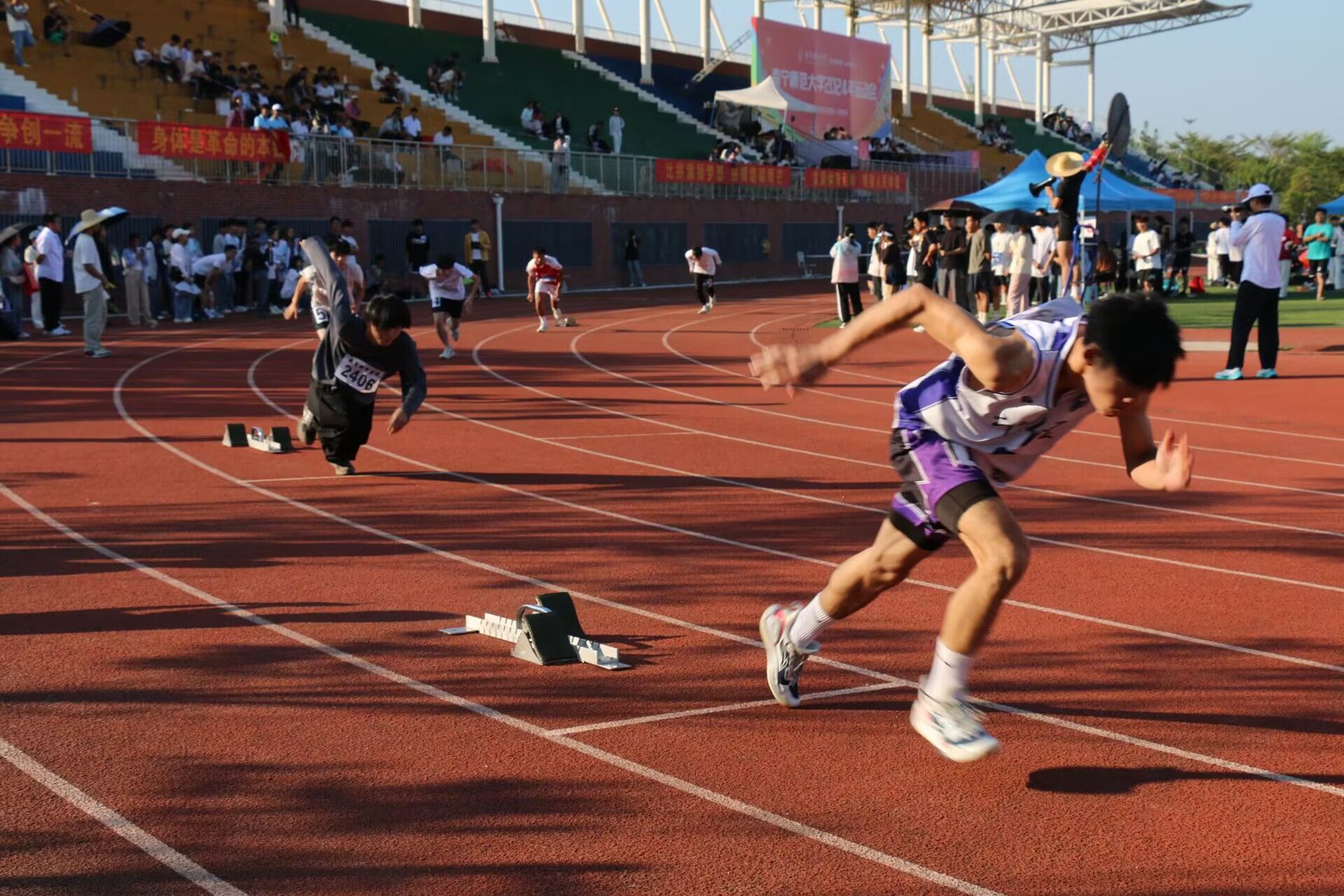 本次决赛共分为甲乙丙三组,共有来自各学院的35名运动员。赛前,运动健儿们于赛道上认真准备,热血沸腾、精神蓬勃。随着发令枪响起,运动员们向着终点疾速冲刺。