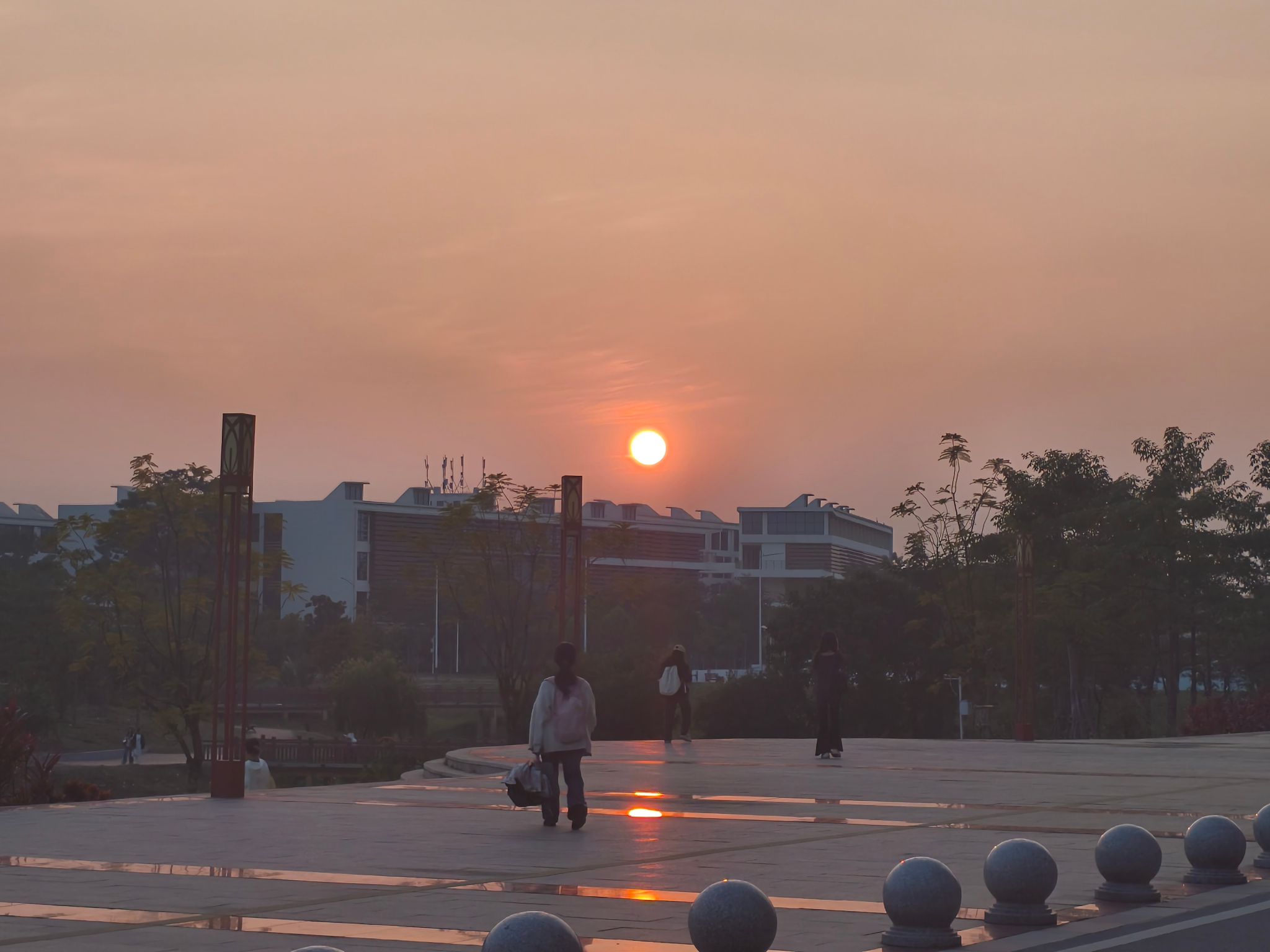待到夕阳西下,那便是冬日最慷慨的馈赠。落日浑圆,不再炽烈,悬在教学楼的飞檐一角。它把最后的金光毫无保留地泼洒下来,给冰冷的建筑物镀上温柔的轮廓,也将学子的剪影,一同绘入一幅安宁的油画。(编辑/韦佳婷、曾玉欣)
