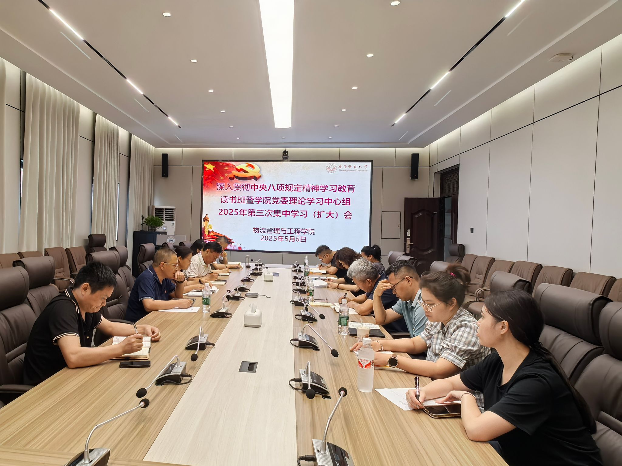 5月6日上午,物流管理与工程学院召开深入贯彻中央八项规定精神学习教育读书班暨学院党委理论学习中心组2025年第三次集中学习(扩大)会。学院党委书记陈兵主持会议,学院党委理论学习中心组全体成员参加会议,学院非党员领导干部列席会议。