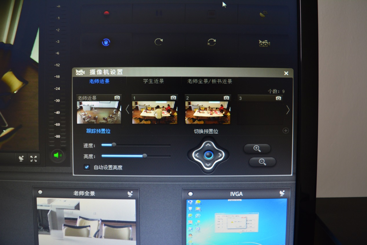 对摄像头的调整分为三个部分:老师近景/学生近景和老师全景/板书近景。